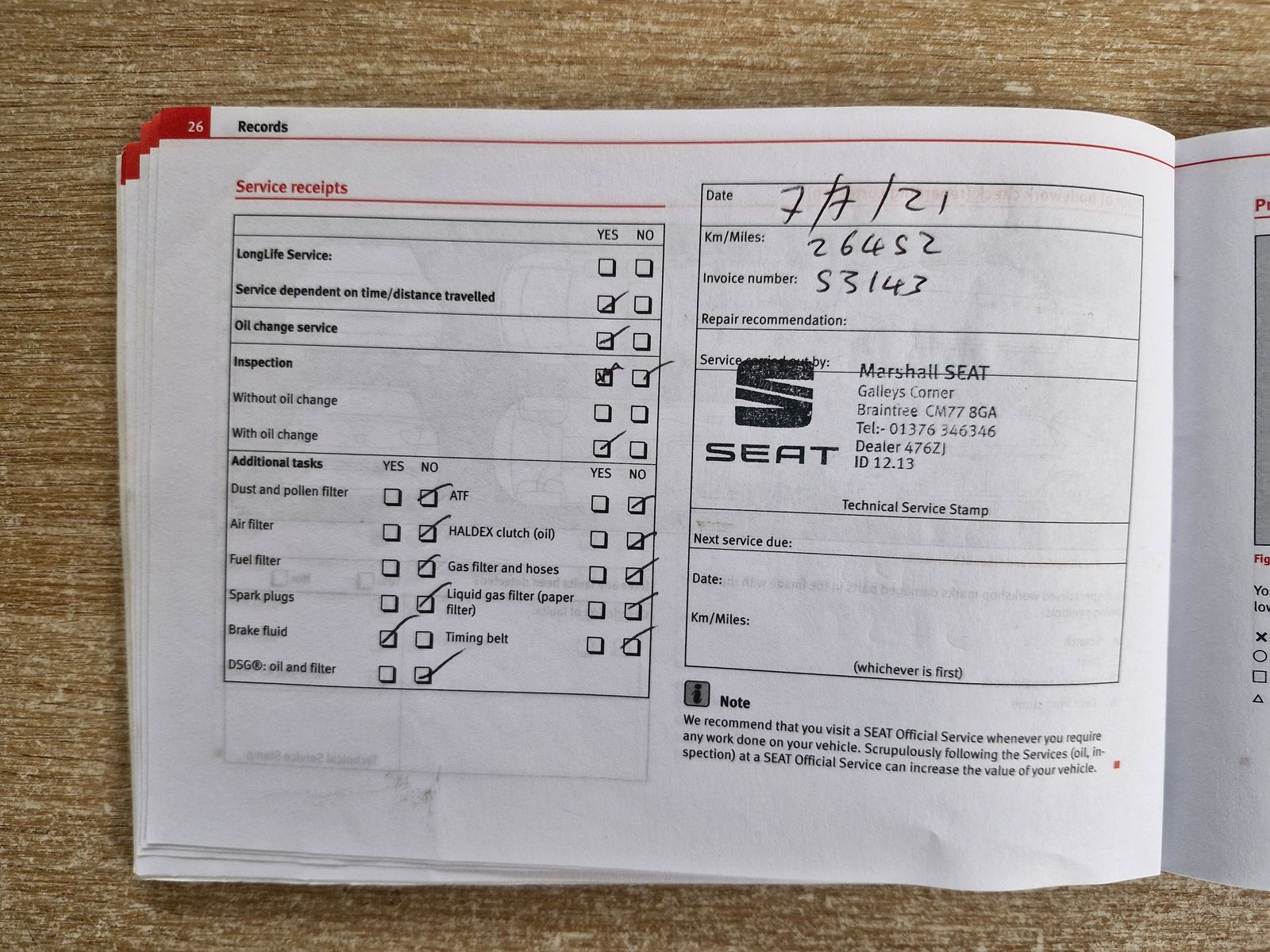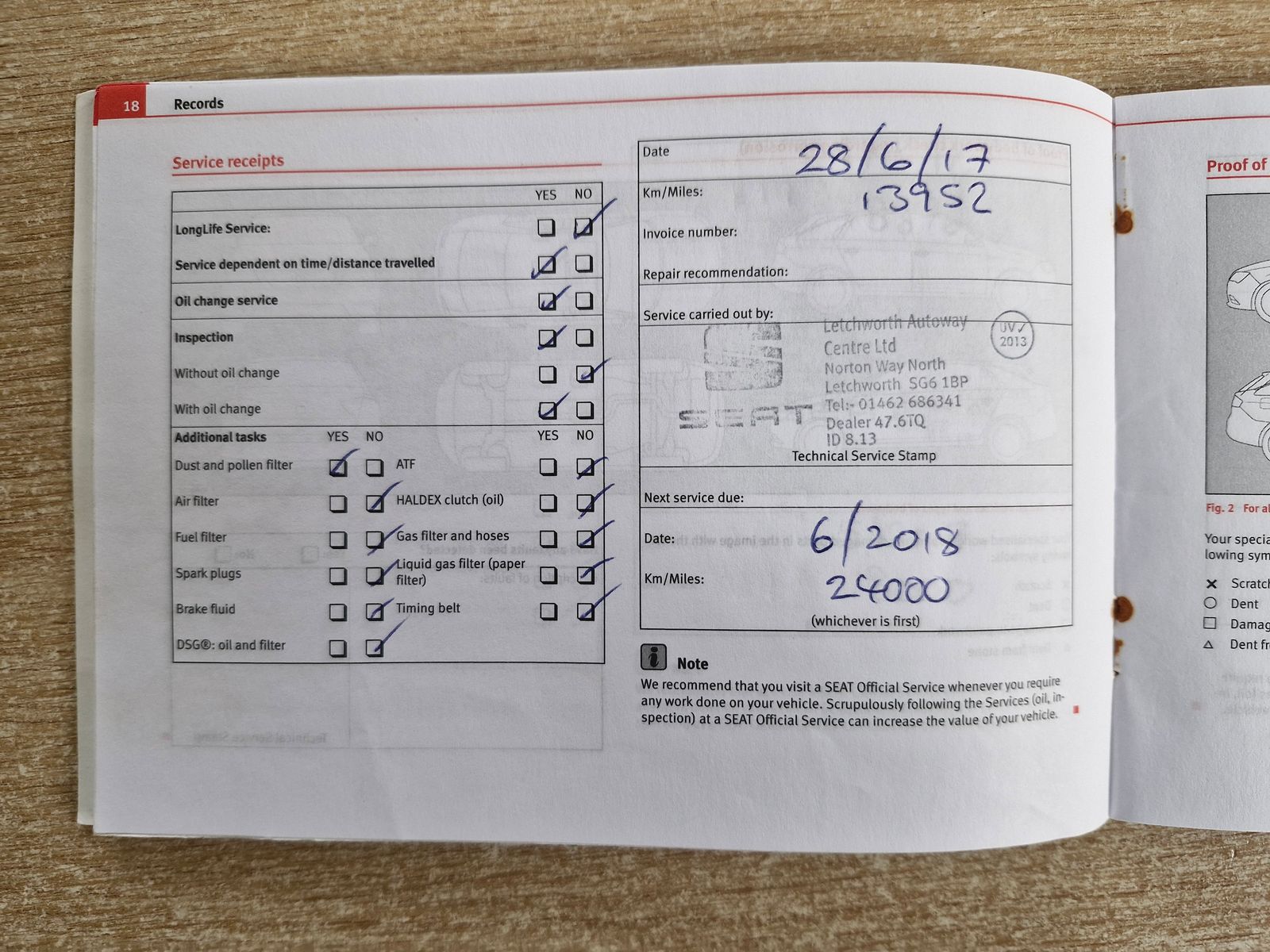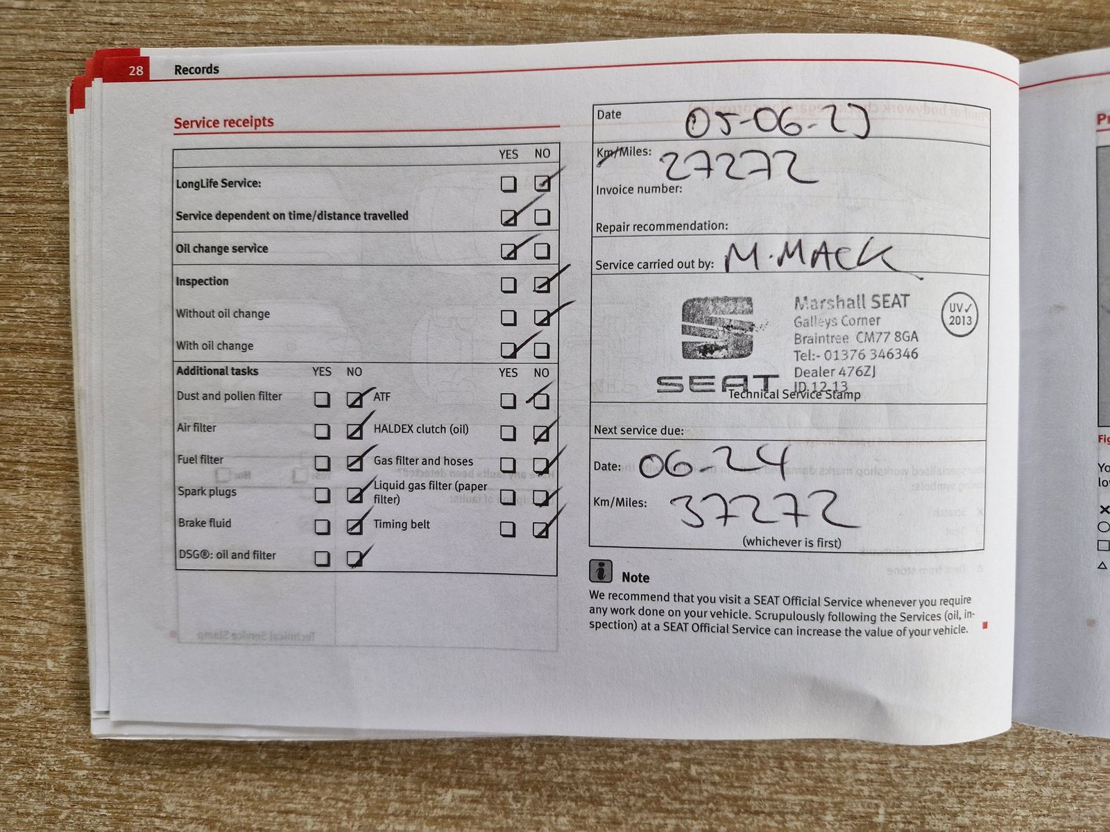 MAIN DEALER SERVICE HISTORY