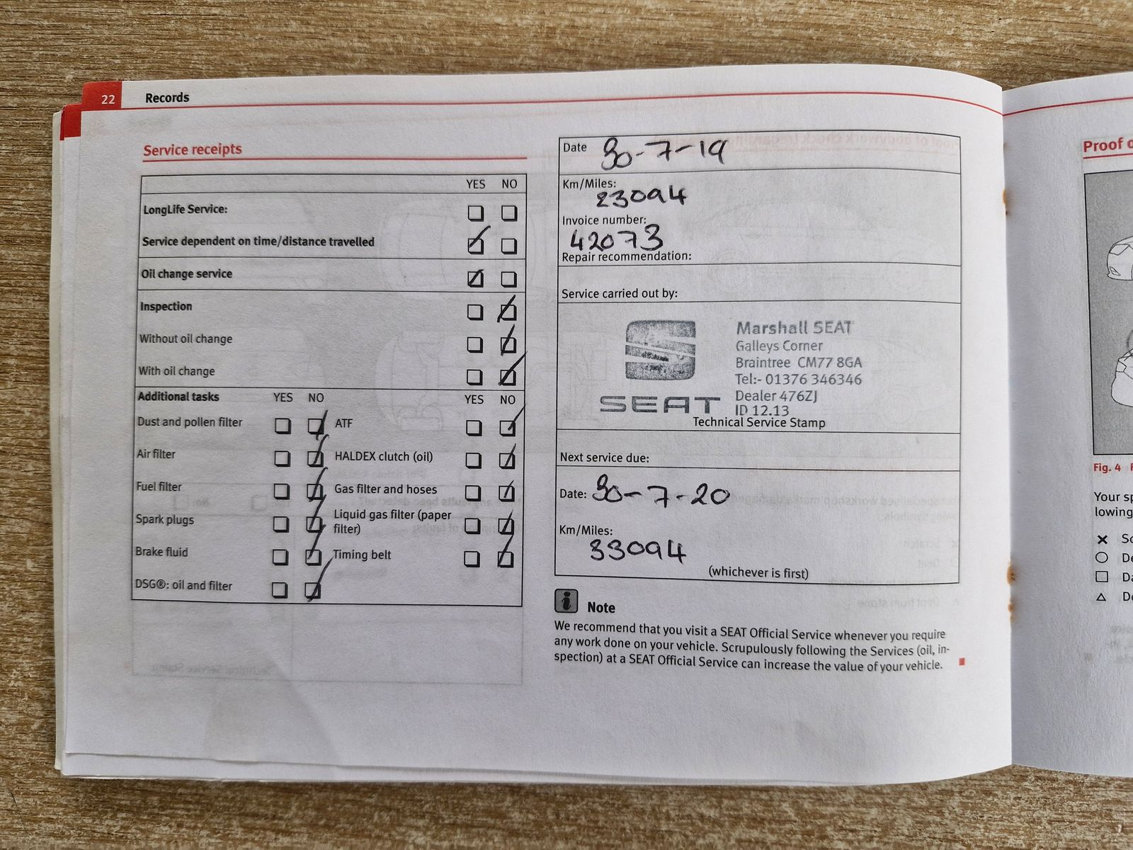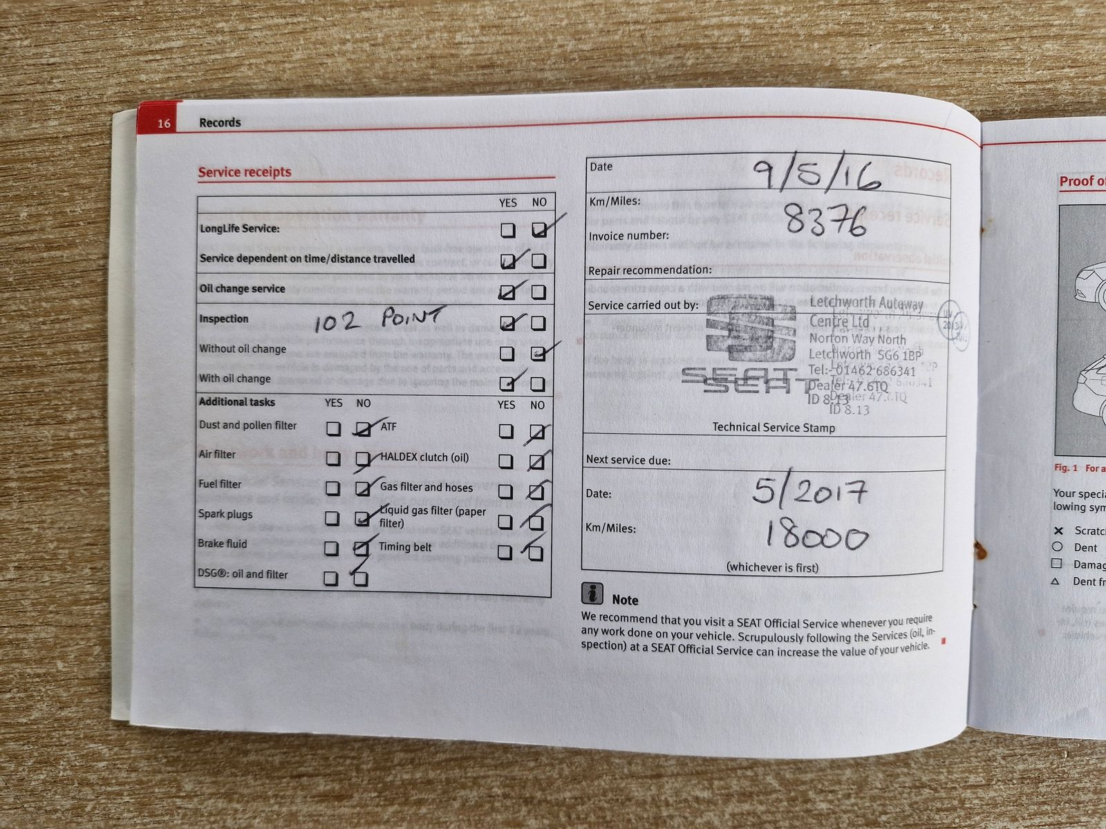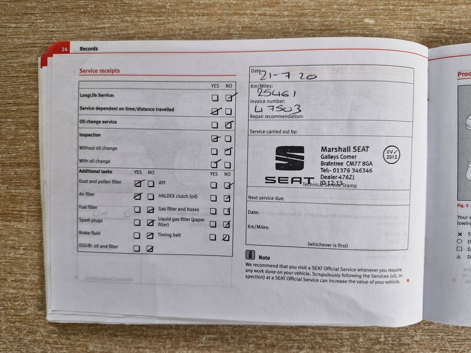MAIN DEALER SERVICE HISTORY